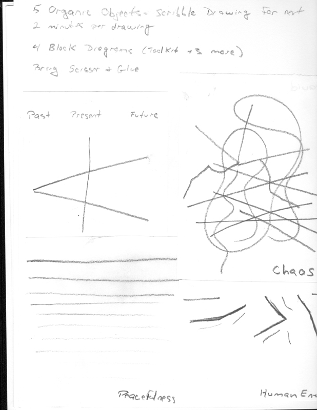 As a class exercise, we were given small pieces of paper, an in 30 seconds, draw a lines or lines the represented the word.