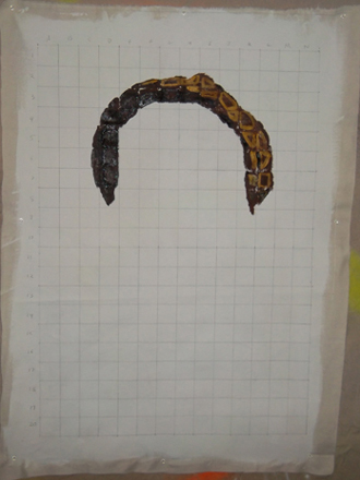 Slide 5: I filled in all of the squares with the mid-tone flesh paint I had prepared.